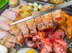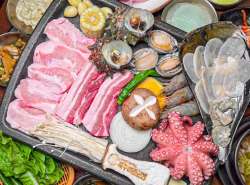제주 특산 해산물과 흑돼지를 함께 즐길 수 있는 삼합 전문점
