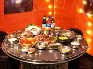창고 형식의 레트로 포차 인테리어로 유명한 흑돼지 전문점