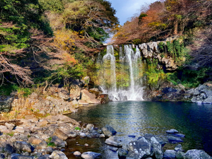 중문관광단지 부근, 천제교(天帝橋) 아래쪽에 상 ·중 ·하의 3단 폭포로 이어져 있다.