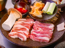 두툼한 흑돼지 삼겹살과 목살을 푸짐하게 제공하는 무한리필 전문점