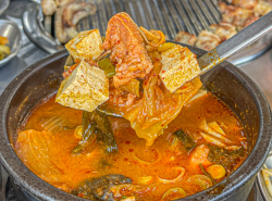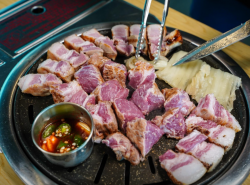 솥뚜껑 불판에 구워 먹는 돼지고기의 담백함이 일품인 현지인 맛집