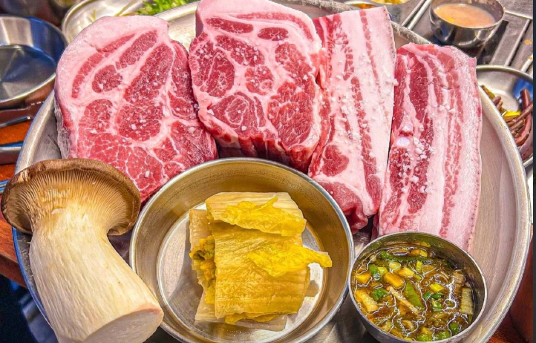 흑목살, 흑삼겹, 금돈가 꽃 가브리살, 금돈가 아삭항정살, 흑돼지 묵은지김치찌개