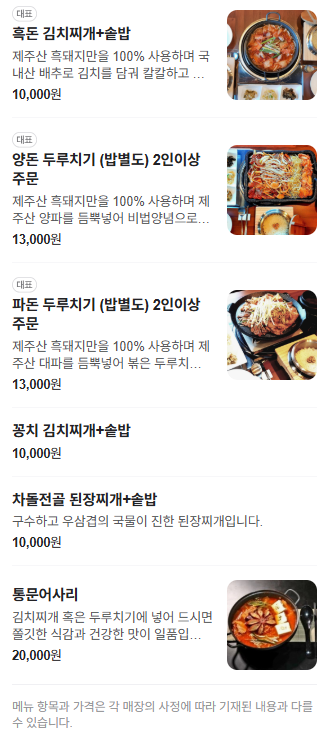 흑돼지김치찌개+솥밥, 양돈두루치기, 파돈두루치기