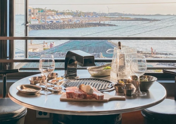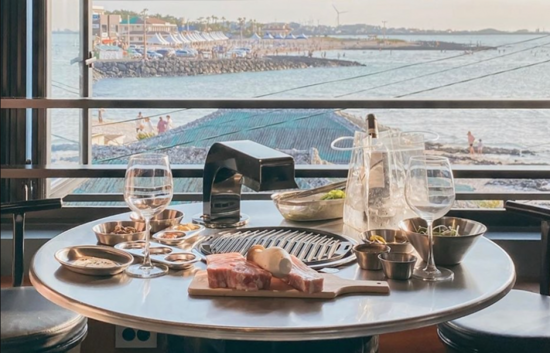 협재 앞에서 노을을 보며 고기를 먹을 수 있어요 고기 쫠깃쫠깃 육즙 가득 진짜 맛집인데 뷰도 끝내줘요!!!!