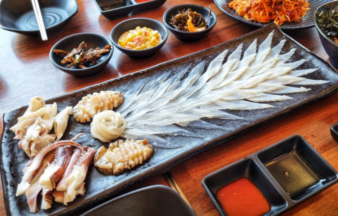 무늬오징어회, 돌문어제육볶음, 무늬오징어스페셜(회,숙회반반,물회,회국수,버터구이)