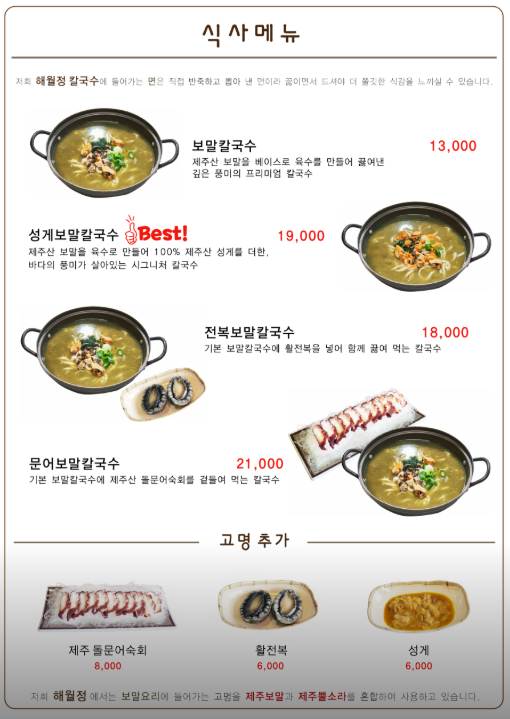 제주특별자치도 서귀포시 대정읍 형제해안로 318 (상모리, 송악산도식후경) 1층 형제섬보말칼국수