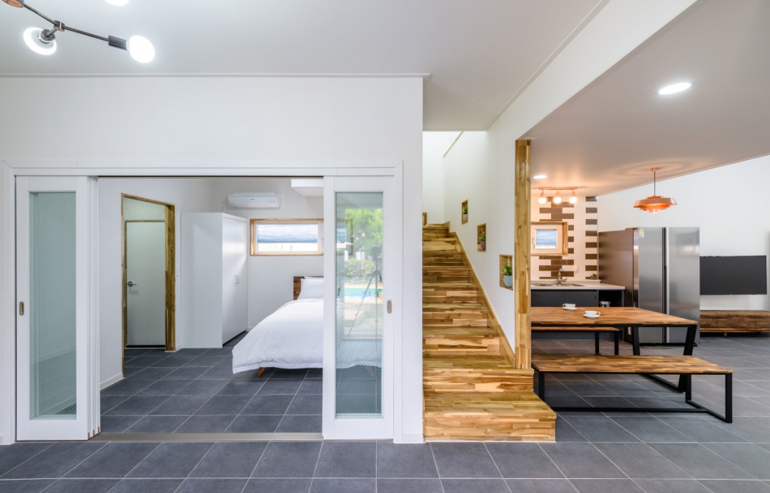 건물은 이쁘고 숙소 깔끔하고 시설도 다 좋고 사장님도 친절하시고 좋은데 1층 침대방에 콘센트가 너무 적습니다. 2층 전면 통유리고 창문이 1개인데 환기가 잘 안되서 아쉬웠습니다.