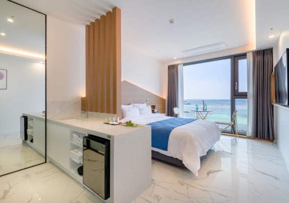 제주여행마다 꼭 메르블루에서 머무르며 공항 근처를 여행하는데 저희는 차가 없어서 뚜벅이로 버스와 택시를 애용합니다. 대중교통을 이용하기에 너무 좋은 위치이며, 근처에 맛집도 많아서 항상 그 맛집들을 함께 방문합니다. 너무 깨끗하고 친절하시며 씨유가 있다는것도 정말 편합니다. 바로 옆에 스타벅스도 말 할것도 없고, 여러 호텔을 다녀보았지만 오션뷰는 여기가 최고라고 단언할 수 있습니다. 정말 아쉬운 점은 수압에 비해 샤워기헤드가 너무 커서 긴 머리를 감기에는 너무 오래걸려요 ㅠㅠ