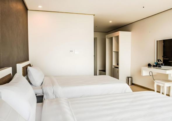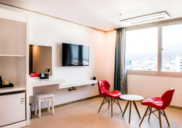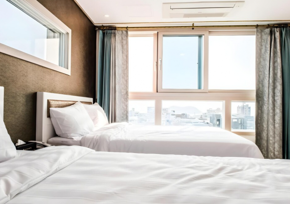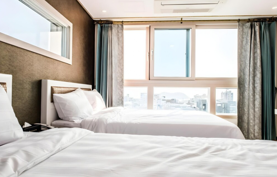 부대시설은 없지만 가격도 저렴한 편이고 객실이 생각보다 넓어요.깨끗하고 욕실 물도 잘 나오고 수압도 좋네요. 딱 한가지 화장실 비데가 없어서 조금 아쉽네요. 올레시장이 바로 앞이라 음식 구경거리가 좋아요. 공항에서 오는 버스가 근처에 정류소가 있어 올레길 여행자들 접근하기가 편안합니다.