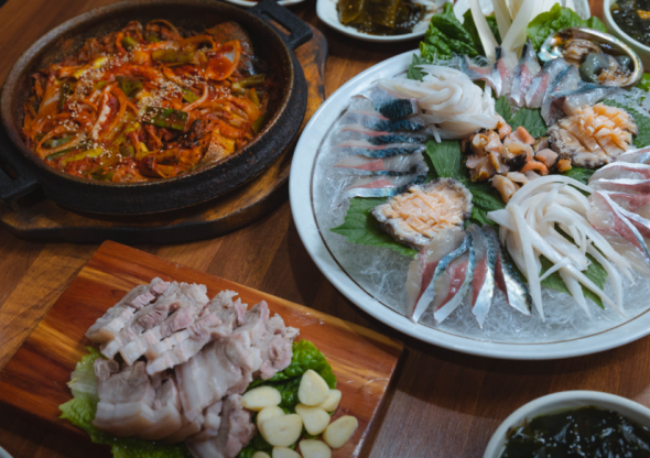 제주은갈치조림, 갈치구이, 전복뚝배기, 성게미역국, 고사리육개장, 도새기몸국, 갈치국,활한치물회, 제주성게