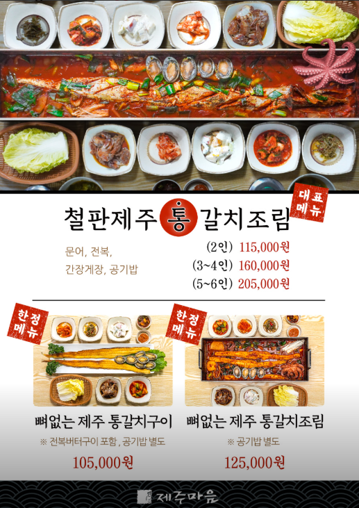 철판통갈치조림, 뼈없는제주통갈치구이, 뼈없는제주통갈치조림