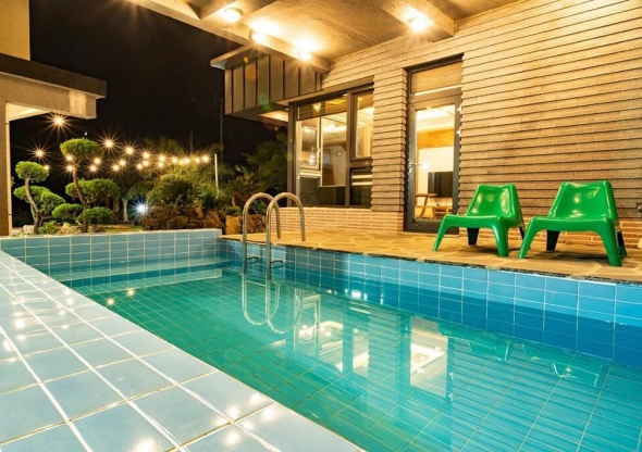 성산일출봉 근처라고 하지만, 표선해수욕장과도 가깝고 아쿠아플라넷제주, 섭지코지와 같은 제주 서귀포 관광지가 정말 가깝고 좋더라고요. 수영장은 당일 물을 받아놓으시는데, 따뜻하고 거실 바로 앞에서 왔다갔다 이동선이 정말 편했고요. 물이 꽤나 깊어서 어른들도 재미있게 놀았습니다. 특히나 호텔식과 같은 침구는, 정말 좋았어요