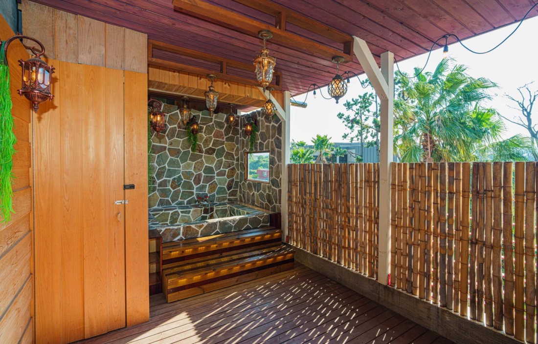 자쿠지 인테리어 최고였고 밖으로 보이는 뷰는 정말 끝내줬습니다.