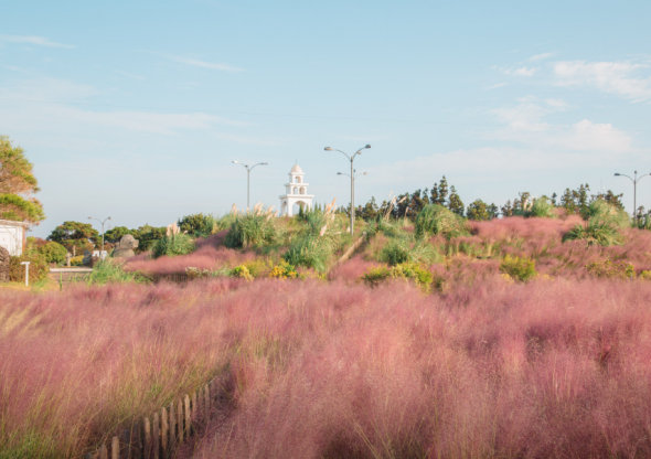 제주허브동산 핑크뮬리에 대해 소개해줘