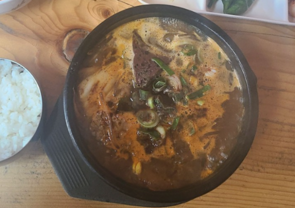 해장국 재료도 푸짐하게 들어있고 고기가 부드러워요 마늘 한 스푼 넣어주니 맛이 더 좋아지네요