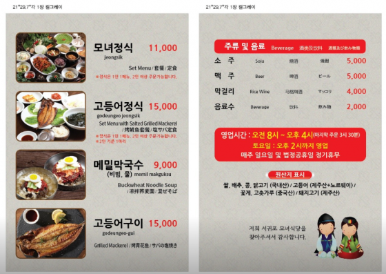 모녀정식, 고등어정식, 메밀막국수