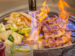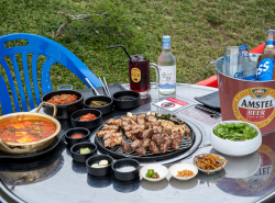 포차감성의 야외테이블에서 맛보는 쫄깃하고 고소한 제주 흑돼지