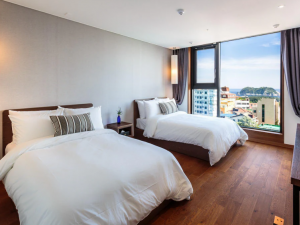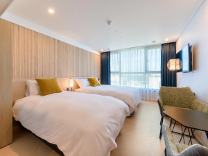 현대적인 디자인과 편리한 위치를 갖춘 제주도의 세련된 호텔