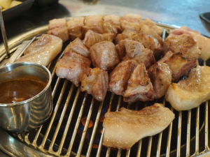 다양한 부위의 제주 흑돼지를 맛볼 수 있는 곳으로, 특히 목살과 오겹살이 두툼하고 육즙이 풍부하다.