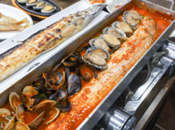 성산일출봉을 바라보며 먹는 신선한 해산물과 흑돼지