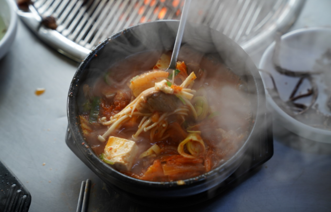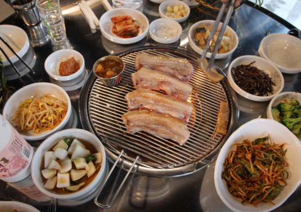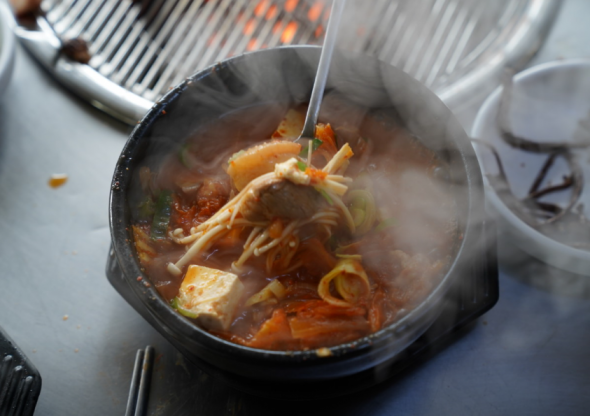 연탄불에 구운 짜투리 고기의 쫀득함과 된장찌개까지 완벽!
