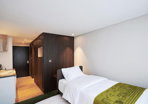 한라산뷰 전망이 최고입니다. 간단한 조식을 제공하고 청결합니다. 좁은 느낌은 있지만 크게 불편함은 없으며 타숙소대비 세탁기. 전자레인지가있습니다. 최고층은 옥상의 팬소리가 들리니 피하시길 권합니다. 통풍이 잘되고 해가 잘들어 냄새가 없는 청결한 호텔입니다.