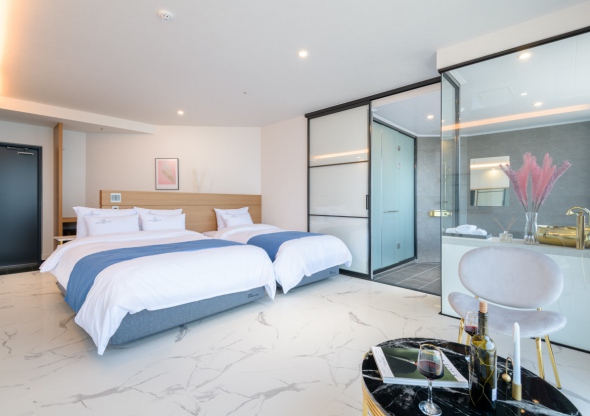 제주여행마다 꼭 메르블루에서 머무르며 공항 근처를 여행하는데 저희는 차가 없어서 뚜벅이로 버스와 택시를 애용합니다. 대중교통을 이용하기에 너무 좋은 위치이며, 근처에 맛집도 많아서 항상 그 맛집들을 함께 방문합니다. 너무 깨끗하고 친절하시며 씨유가 있다는것도 정말 편합니다. 바로 옆에 스타벅스도 말 할것도 없고, 여러 호텔을 다녀보았지만 오션뷰는 여기가 최고라고 단언할 수 있습니다. 정말 아쉬운 점은 수압에 비해 샤워기헤드가 너무 커서 긴 머리를 감기에는 너무 오래걸려요 ㅠㅠ