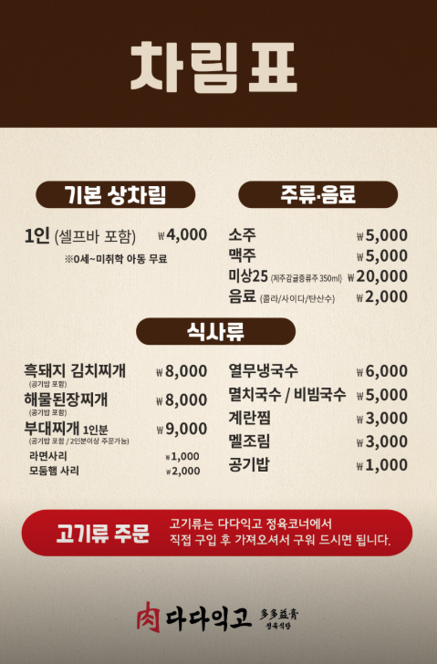다다익고 신서귀포점에 대해 소개해줘
