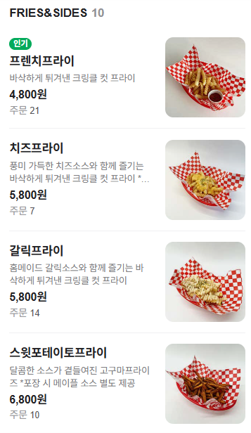 , 그리고 한국인 인기메뉴도 추천해줘