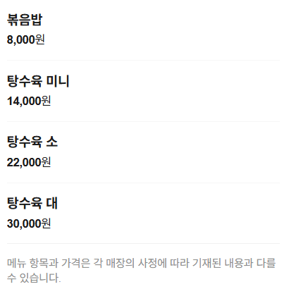 갈비짬뽕, 소불고기짜장, 탕수육